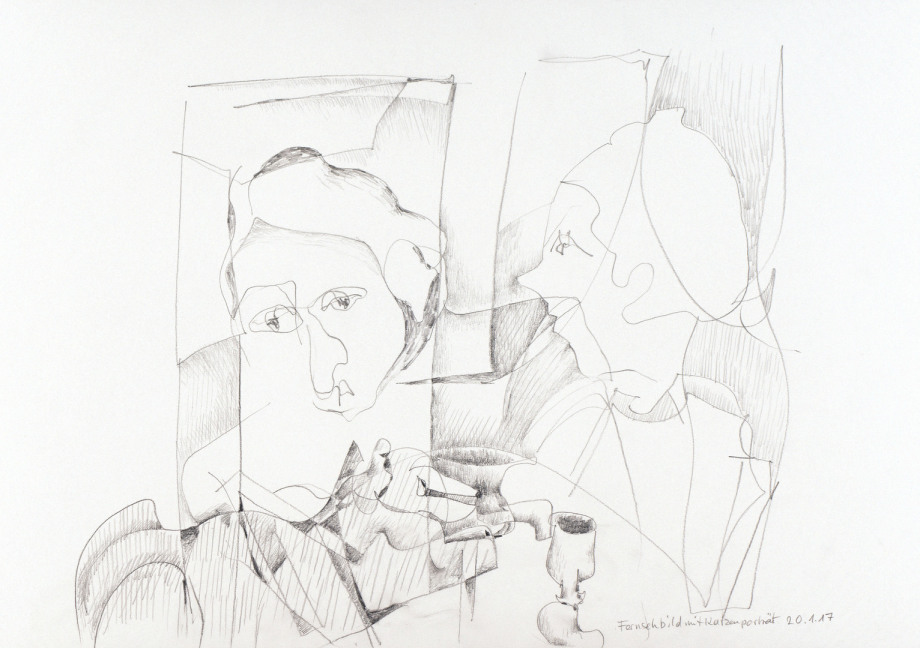 Fernsehbild mit Katzenportrait, 20.01.17, Bleistift auf Papier, A2
